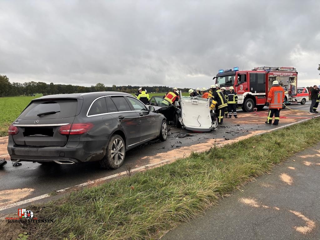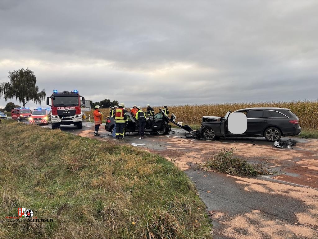 15.10.2025 Groß Meckelsen (as). Auf der Landesstraße 142 zwischen Sittensen und Groß Meckelsen, kurz vor der Ortschaft Groß Meckelsen, kam es am späten Mittwochnachmittag gegen 16.45 Uhr zu einem schweren Verkehrsunfall. Ein VW Golf und ein Mercedes-Benz der C-Klasse waren aus ungeklärter Ursache frontal miteinander kollidiert.