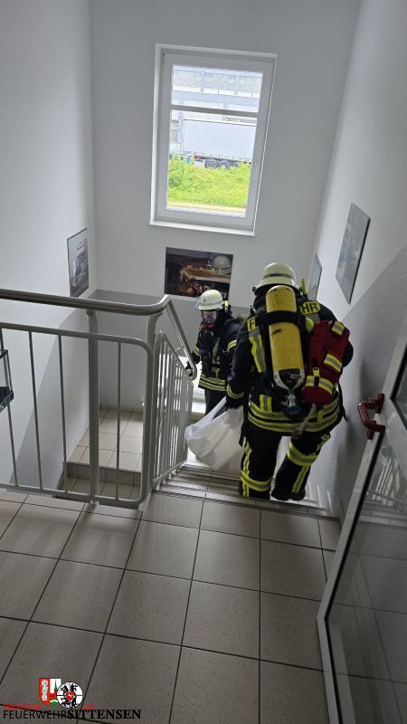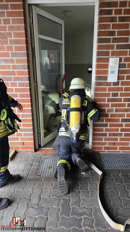 Zu einem Entstehungsbrand kam es im Bereich des Garagenkomplexes. Ein weiterer Kleinbrand brach in einem Büroraum aus. Durch die starke Rauchentwicklung war das gesamte Gebäude schnell vollständig verqualmt. Die Feuerwehr Sittensen rückte mit Unterstützung der Feuerwehr Tiste und zahlreichen Einsatzkräften aus. Drei Personen konnten sich vor dem Rauch in einem Büroraum im Obergeschoss in Sicherheit bringen. Sie wurden zügig über Steckleitern ins Freie gerettet. Ein Trupp unter Atemschutz befreite zudem eine bewusstlose Person aus dem Obergeschoss.